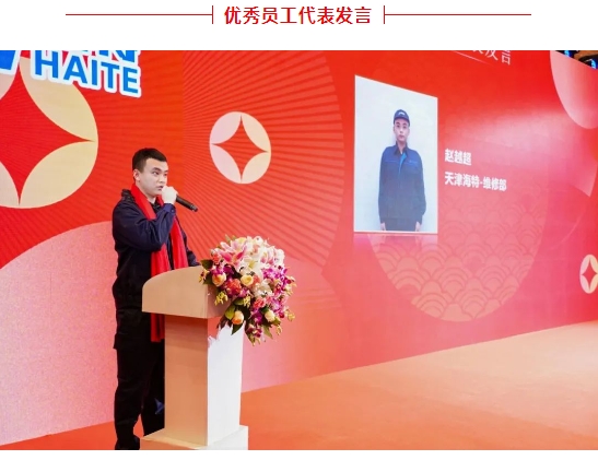 天津海特维修部赵越超作为优秀员工代表发言,他讲到,2024是充满成长与收获之年,在过去一年中,通过不断挑战自我,承担更多任务责任,提升专业技能以及团队高效沟通协作,为公司创造价值。海特为员工提供了丰富的资源和广阔的发展空间,相信在公司领导的带领下,海特将继续乘风破浪,创造更加优异的成绩。展望未来,将以更加饱满的热情和更高的工作标准,投入到工作中去。