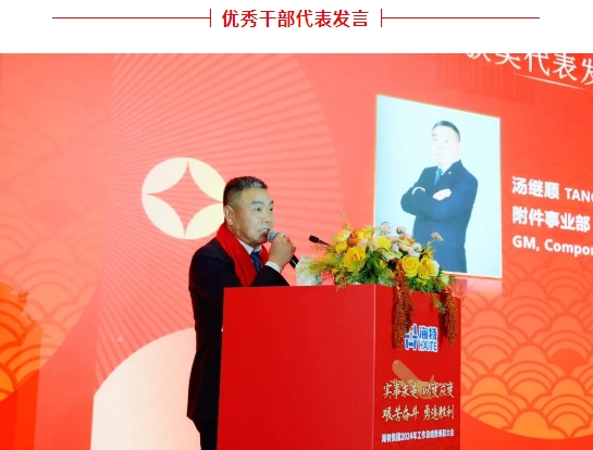 附件事业部总经理汤继顺作为优秀干部代表发言,他讲到,感谢股份公司领导对事业部的支持帮助,感谢每位员工的积极努力。此次获得荣誉,是压力也是鼓励,希望和大家在2025年一起,努力奋进、敢想敢干,开辟新的市场点、不断开发新能力,相信在大家的共同努力下,能够完美达成2025年目标任务。展望未来,我们满怀信心与期待,同时也将继续秉承公司的核心价值观,深化技术创新,优化产品结构,提升服务质量,致力于成为行业领跑者。